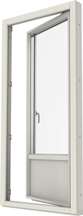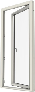 Inåtgående fönsterdörr. Finns i olika varianter, helglasad, glasad underdel eller fyllning nertill.